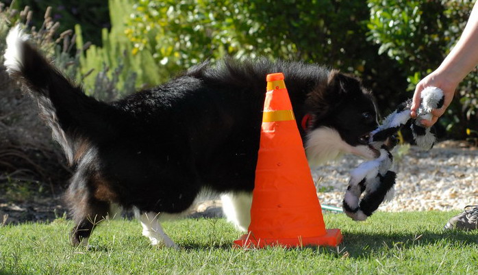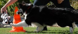 We are not doing too much agility equipment wise, but she is getting to love the Chase the Toy Around the Cone game which has the effect of teaching her to really dig in and flex her spine for turning tight.