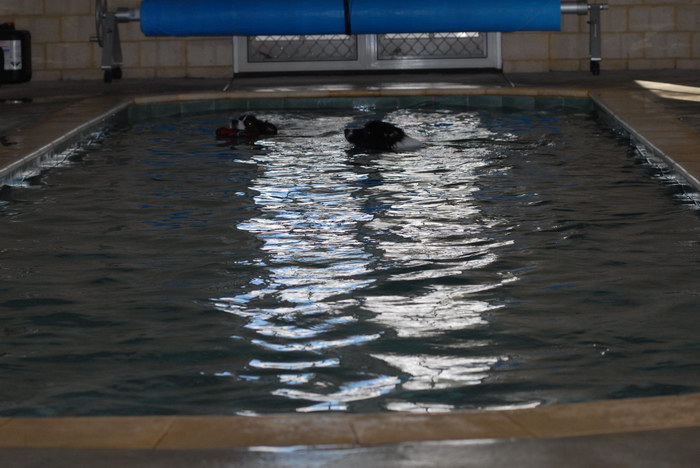 Found this place around three weeks ago and I am very happy with it. I swim them three times a week for half an hour. Usually Cypher goes first for 15 minutes followed by Raven for 15 minutes. This last week or so I’ve upped it a bit so that they are swimming for closer to 30 minutes, both are in the pool at once.