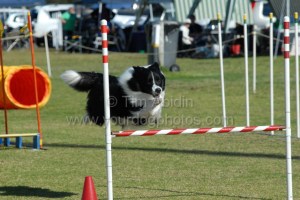 Cypher had more success – a 2nd place in the first Masters Jumping trial was his best result so far in that class and finished off his JDM2 title. He followed that up with a 3rd place in Open Jumping (same result as last weeks trial!). He did a cracker run in the second Masters Jumping course and I didn’t realise till after we finished that we had missed a whole entire jump! Still he didn’t know at all as he was playing tug madly with me after the run! In the first Open Jumping I think I let him out of my peripheral vision for half a second and that was enough, he decided to chuck an extra jump in on the way to the tunnel! Very pleased with how he ran in general in the afternoon, much improved on the morning where both he and I made mistakes that cost us – in fact I stuffed both Masters Agility runs for him and he stuffed both Open Agility runs for me with a bar down in one and a complete selective hearing issue in another!
