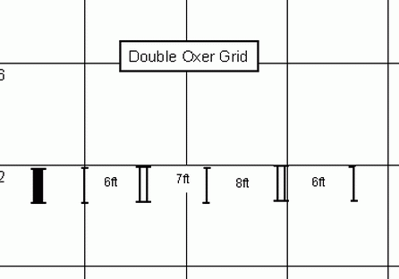 PROGRESSIVE GRID Measures: 1 jump hump plus 5 jumps at 5, 6, 7 and 8 feet apart. IE Each grid is longer than the one before.