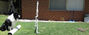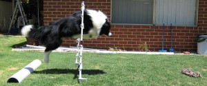 A few weeks ago now I attended and worked Cypher at a jumping weekend conducted by Cathy Slot from Queensland. Cathy has had the honour now of working with Susan Salo’s methodology a number of times now including a whole week in Canada with Susan Salo herself in 2006. She emphasised she was sharing, to the best of her ability and recollection, what she had learnt from working with Susan and also through working with handlers and dogs on the East Coast. Cathy regularly reiterated through out the whole weekend that she was by no means an expert in jumping she never the less felt that Susan’s training methods had helped a large number of dogs who struggled with jumping and even dogs who needed to make their style more efficient and tidier. Cathy said that she was happy to share as much as she could, given that Susan Salo had indicated she wouldn’t be able to come to Australia to teach everyone herself.She also referred everyone to Susan’s articles in Clean Run (US) magazine. The following notes and images were transcribed from my scribbles at the three day weekend. If you are working from these notes, please remember that there isn’t a “set recipe” for all dogs. I must say it required a quite radical change in my usual methodology towards teaching jumping. I have been of the belief that keeping grids low for too long will results in dogs’ becoming lazy over jumps especially if when toes are clicking against bars or bars are being dropped that we do not mark it in some way. I’m all for getting them jumping at competition height asap so that there is less repetition on heights they will not see in trials and less chance for bar touching/knocking. The following weekend meant a rather big change in that approach however it is the first time keeping grids low has made sense to me. I can see that there is very good rationale behind it. I am using the following grids with all three of my dogs – only one of which has a bar knocking problem, the other two are needing improvement on their general style and ability to scope and take off points. Cathy did mention that once the dog is jumping full height, Susan will continue get them to jump a variety of heights, including during sequencing/exercises, usually including higher than their competition jump height.