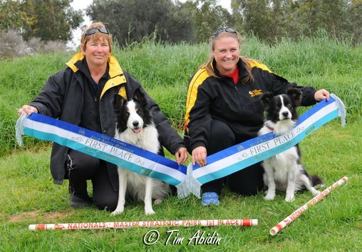 Yet still it seemed as if more good fortune was due our way. Little miss Spryte in her first run of the day in the Novice Strategic Pairs class with her partner Spice and Andrea Patching (who was very tolerant I must say as I basically had numerous courses to remember so I simply asked if she could do this part and that part and that’s how we were going to do it!) took out first place there too. Spryte is now the