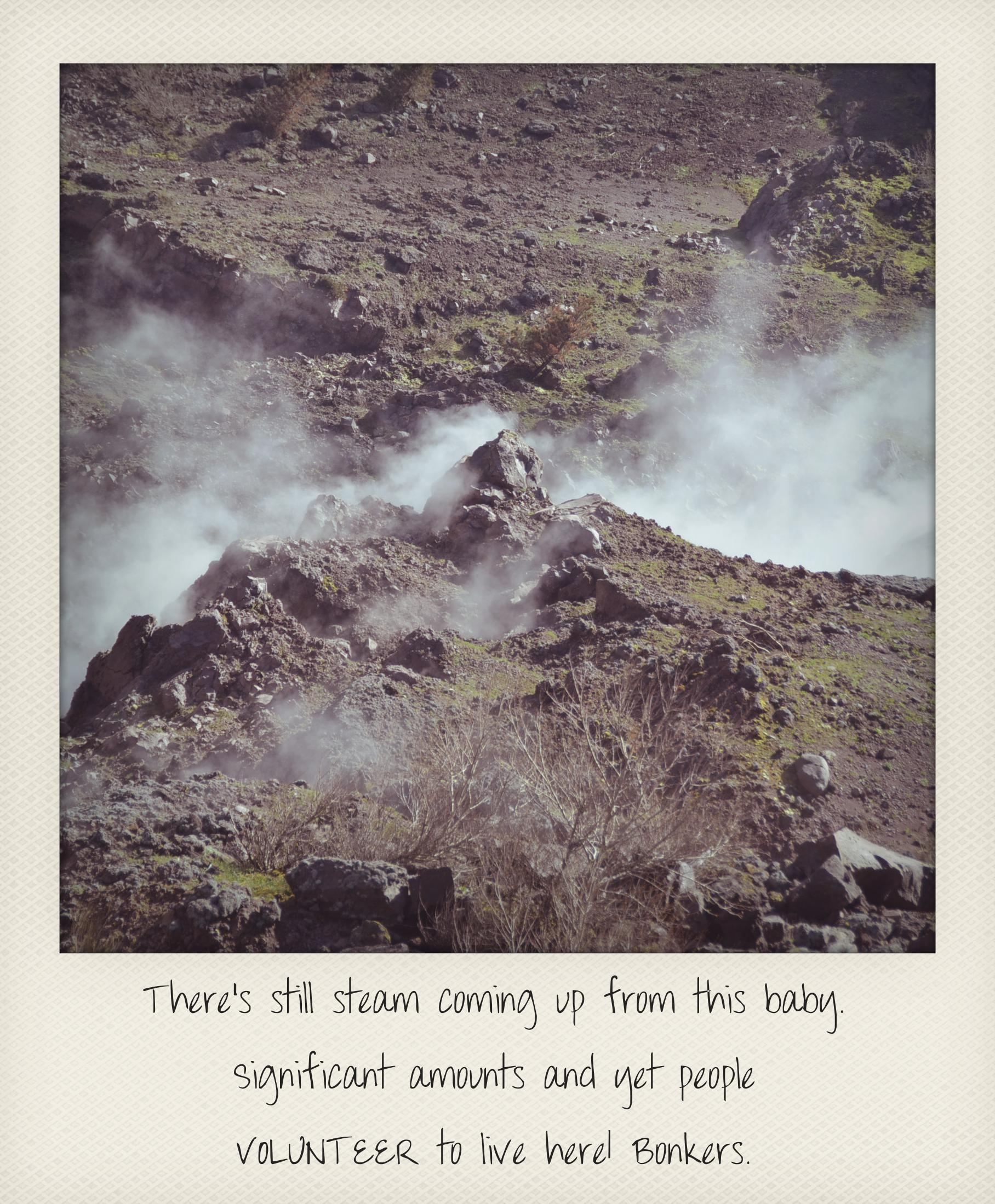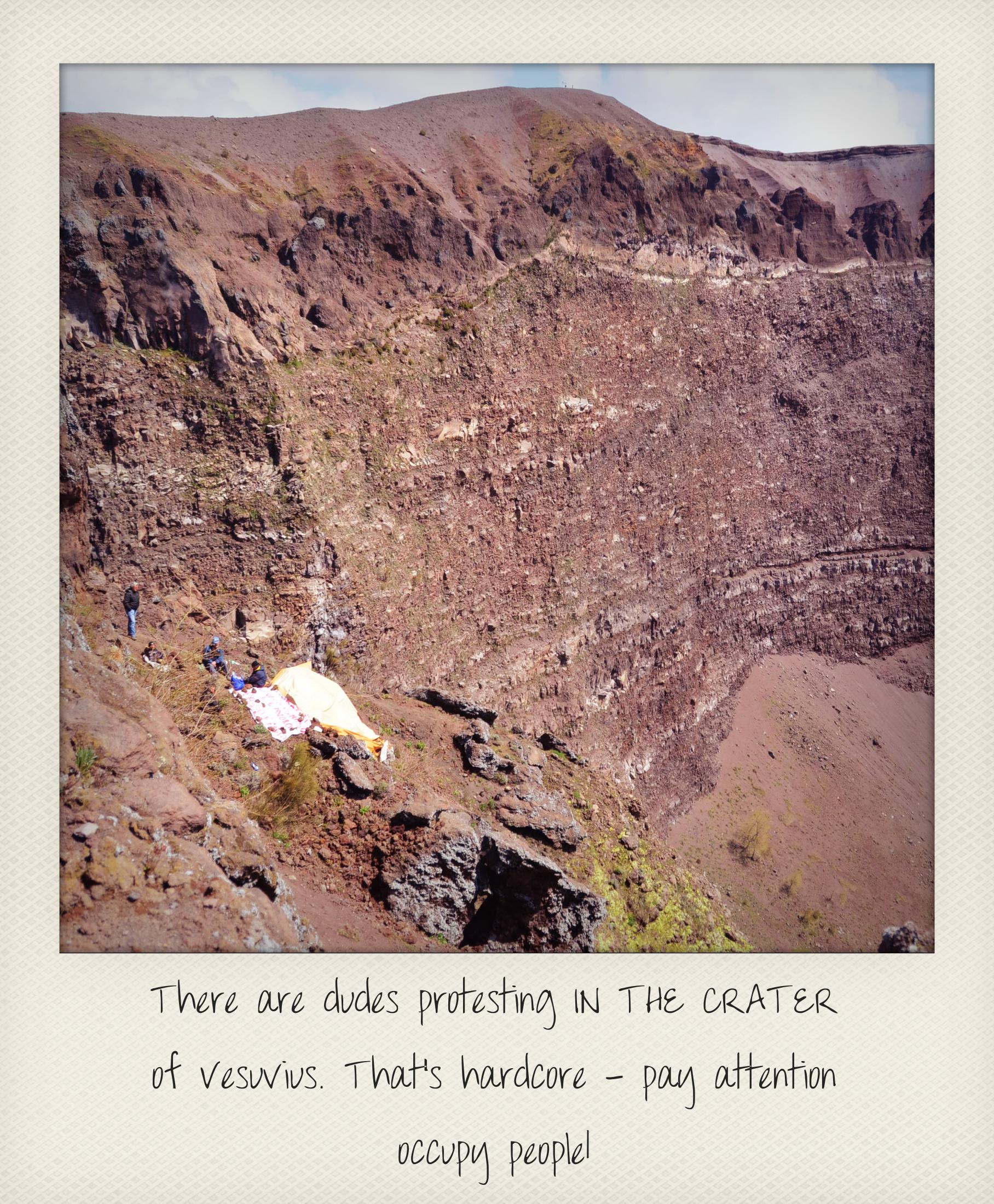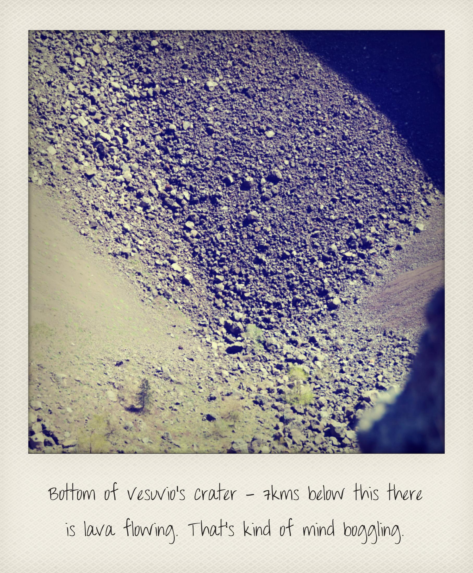 When we got to the top we had a good view of the crater at the top of the cone. What I think I found most disturbing about this whole experience was the fact that the guide (a born and bred Roman with a passion for the history of Vesuvius and Pompei) was quite concerned about the people living in the area. Vesuvio is still considered an active volcano although it is sleeping currently – however according to history Vesuvio is due to blow again any time soon. There are 600 thousand people living in this region (despite the government offering them money to move) and they have tried an evacuation drill once. It was apparently an abject failure with no one managing to get to safety due to traffic jams. I’m telling you right now – this area is stunning beautiful, the weather is gorgeous and the scenery just breathtaking. You could not pay me to live here though, holiday? Yes. Live? Absolutely not.