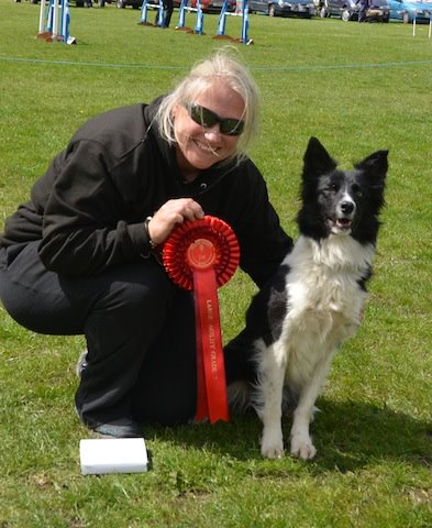 What that did mean though – in between taking Pip for nice long walks in the woods, getting her pet passport checked off and having a play with her in the practice ring – was that I was able to sit back, relax and take in everyone elses’ runs and I was sure glad of the opportunity to do so (would have been more glad to have run of course but I just had to suck that one up). I managed to watch most of Daisy and Solar’s runs which were just GREAT to see live for a change instead of via the internet. Solar and Daisy were LOVING the Pentathlon courses and were putting down some very nice, smooth moves that got them through courses clear and in top five and winning a couple of the pentathlon rounds too I think.