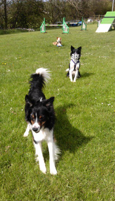 In line at Camddwr Farm Wales – in front Darleyfalls Tog aka the “Tog” man! π Love this boy, ran by Stu and trained and loved by both Ann and Stu, he impressed me last year and this year he impressed me even more!Β A big, bold tri colour he really raised to the occasion, Stu being so unlucky not to podium with some brilliant and quick runs with him. Behind Tog is his sister (repeat later mating) Pip in charge of the toys as usual π and behind her the more lady like Noonoo!! (Well she was being lady like in this pic at least) Ann and Noo had a FANTASTIC World Agility Open, I was so chuffed for them both, Ann running Noo clear twice inside in the superb indoor arena and Stu finishing with a top three placing with her in one of the Pentathlon rounds. She didn’t put a paw wrong and the excitement coming off her and her owners/handlers was palpable and infectious! Go the Noo!