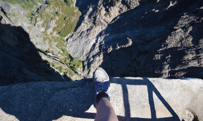I bravely stuck my foot through the railing in the interest of photographic art or course. Those green bits down there? They look much further away when you’re standing on the edge.
