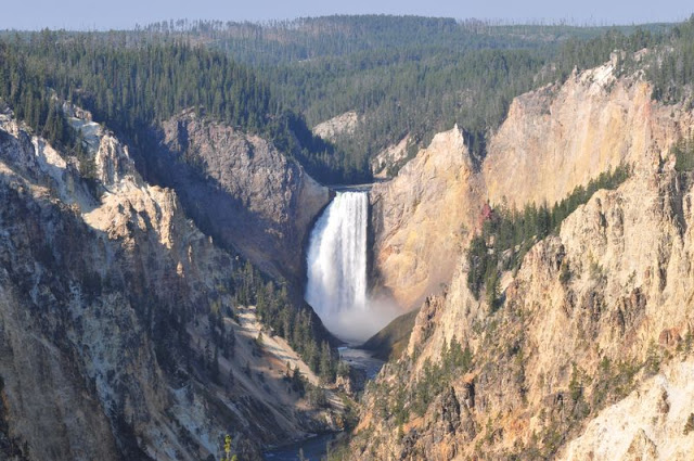 It’s here you see the actual Yellowstone part of the Park. Once we walked the rim a little, I got changed out of jeans and into track pants to do the “Strenuous” Uncle Tom’s Trail. It said this trail took an hour in all the guide books and that it is strenuous because of the elevation and the grade of steepness. It descends around 155 meters just about straight down. So the down part is easy. The getting back up part is the hard bit. I was psyched up for a physical challenge. It took me ten minutes to get down it (it takes you near the bottom of the lower falls in the Grand Canyon) and about seventeen minutes to come back up the 300 plus steps and a couple of switchback areas. I was done in 27 minutes and whilst I did stop a couple times it wasn’t through the lack of legs but what I notice was the effects of the elevation. The whole thing is about 6000 feet above sea level. That had an impact on my breathing. So I had to stop to catch my breath a couple times. The views on the way down are indeed pretty special. But it’s not what you’d call a strenuous trail for any length of time. After Uncle Tom’s Trail we then headed off to a new post in the park. On the way though some Coyote photographic ops presented themselves!