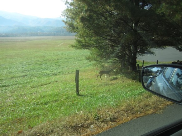 We drove along the Cades Cove route as well which is a fairly long 11 mile one way loop road that circles the cove, a valley surrounded by the Smoky mountains on all sides.