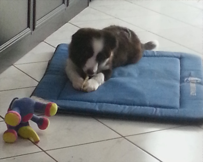 4.5 months old and settled into the Tim and Simone home like he’s always been here. Robyn snapped a couple of pics before he left all freshly bathed and everything..