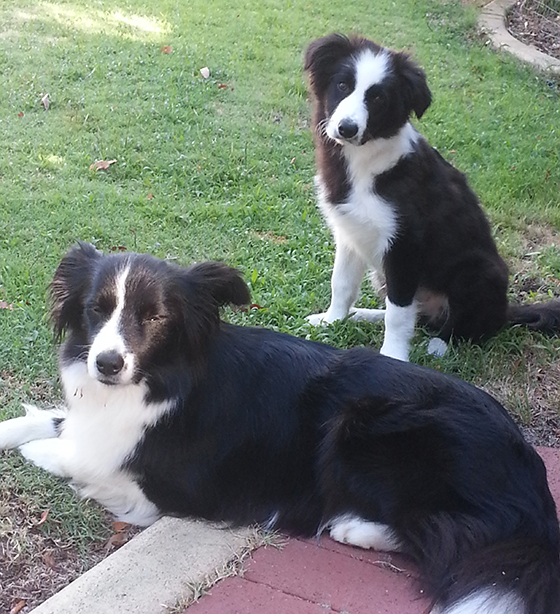 He’s gone to training and met several other Borders and a Toller and a Labrador and on our walks has introduced himself to Dennis the JRT and also met a snuffly geriatric spaniel with whom he was nothing but respectful with. Cypher is being worn down with an inexorable relentlessness by his charmingly amusing yet still very respectful ways. The girls are all “whatever” and if they could roll their eyes I think they would. I caught Savvy romping with him for five seconds before she saw me looking and tried to pretend she would never be caught playing with such a baby.