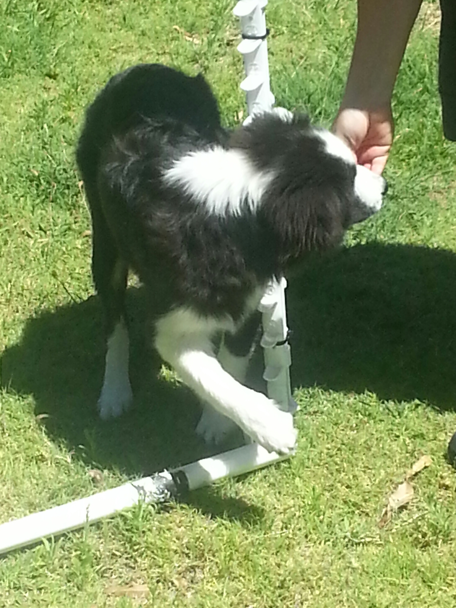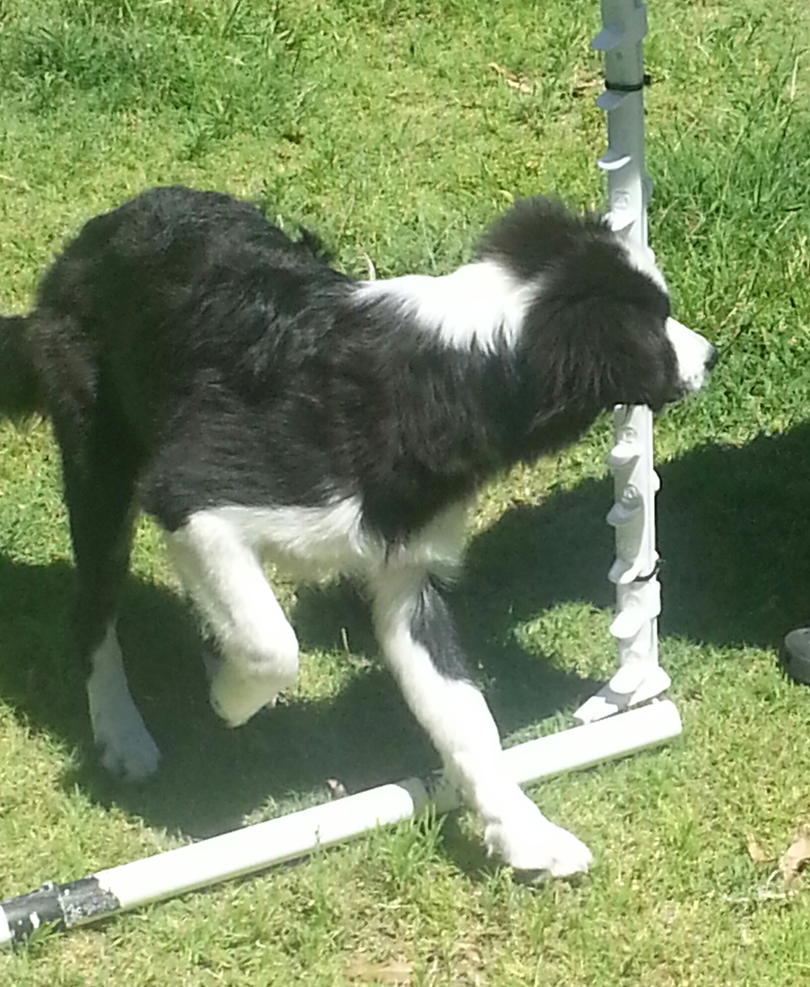 Spryte went for a check up this week and she is fighting fit and doing some nice work for me at training. I am wallowing in the training right now, soaking it all up while I can trying to make up for the time we’ve missed. Tuesday and Wednesday nights have been most productive and at the end of the night we’ve all gone home with tired legs but very contented and satisfied hearts. Colt comes out, still on lead mostly, around the exciting dogs he watches and we’ve done some flatwork up the back and much socialising with both people and dogs. I’ve “liked” the Ann Croft Agility Coach page on Facebook and am enjoying getting stuck into the Happy Hurdle sequences she’s posting there. I do like stuff that gives you lots of options to do and you have to find the one that you think works best for you. And then working on making all the other options just as good π