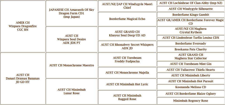 Dam – Aust CH Danari Dramas Bananas JD GD HT